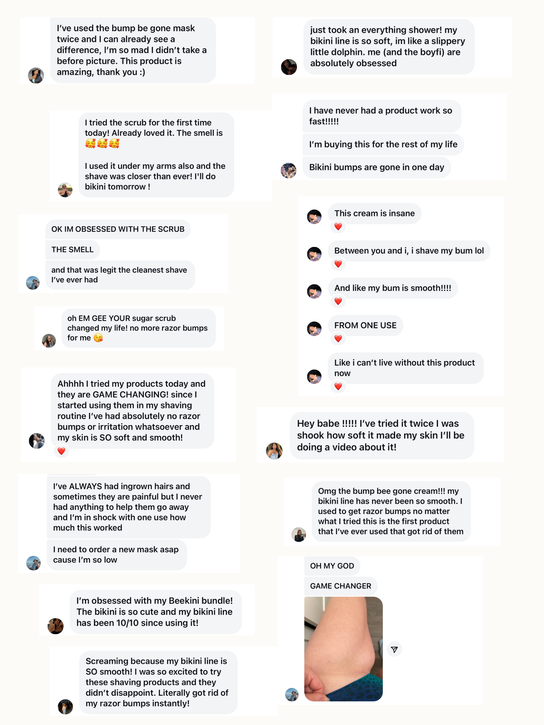 I had to restock so I got the new bundle ( the bikini is the cutest bonus!!!) and Truly the only product set that helped me balance my skin ( down there) I no longer get razor burns, rashes, or pimples, this product is a miracle worker, don't take my word for it, genuinely just try it yourself.